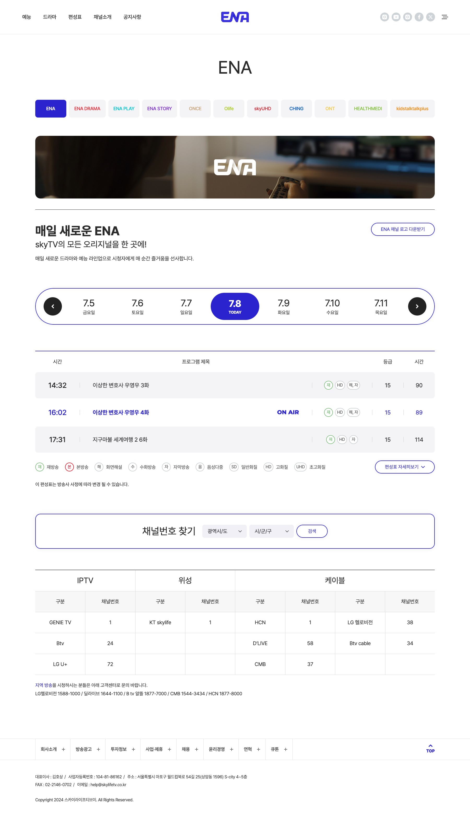ENA 홈페이지리뉴얼에서 작업했습니다.